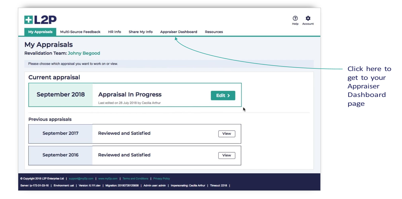 3. Select Appraisee page