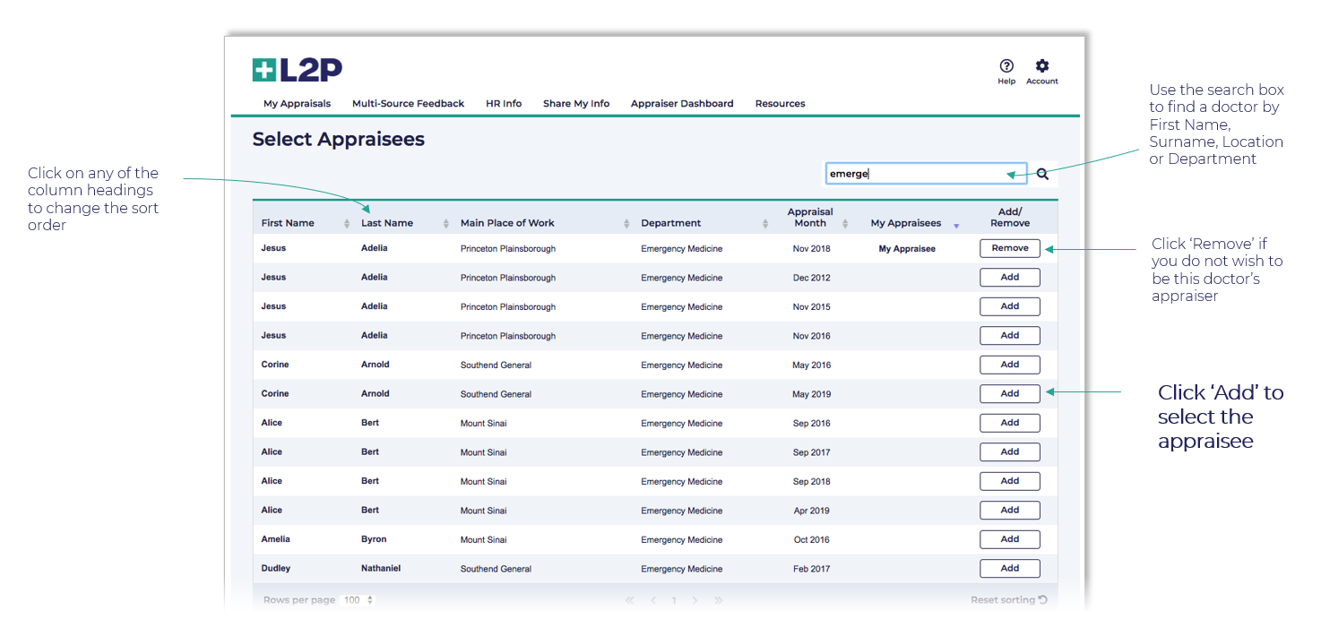 Add or remove doctors as your appraisees