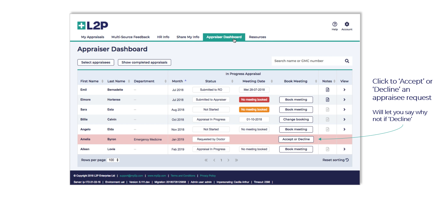 If an appraisee has requested you as an appraiser you can ‘Accept’ or ‘Decline’ the request